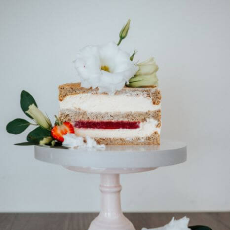Cream 30%, mascarpone, hen's eggs, strawberries, coconut milk, egg plant husks, almond flour, almond milk, coconut flour, Himalayan salt, agar, sweetener: erythrol
