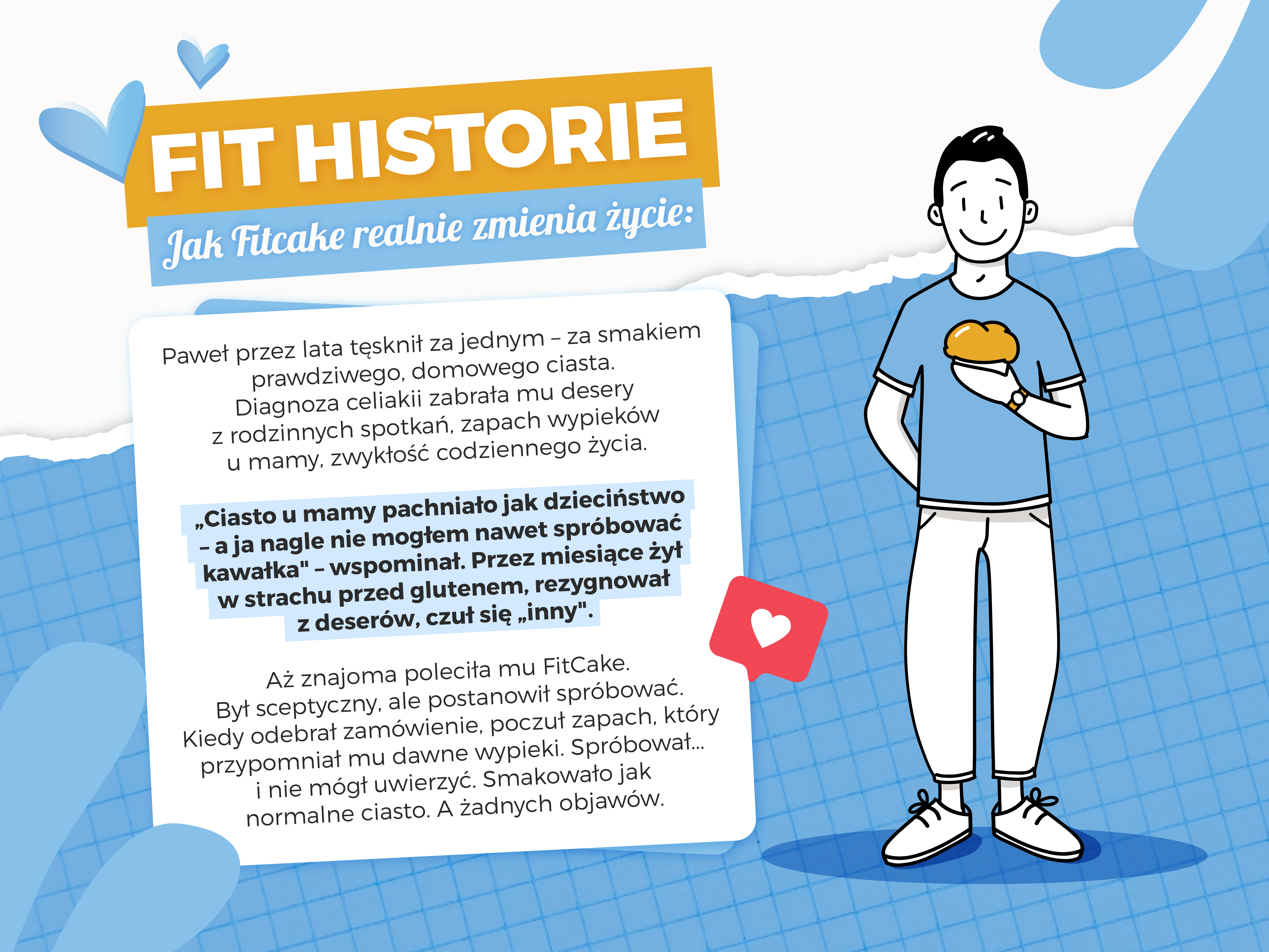 FitCake pokazał mu, że nawet z celiakią można jeść dobrze, smacznie i bez stresu. A dla Pawła to oznacza coś więcej niż tylko zdrowie – to codzienny dowód na to, że ograniczenia można przekuć w siłę.