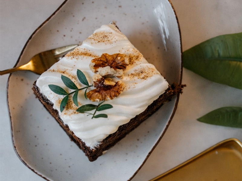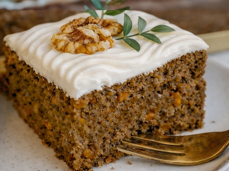 Składniki: Marchew, jajka, mleczko kokosowe, krem kokosowy 24%, substancja słodząca: erytrol, orzechy włoskie, mąka gryczana, woda, sok z cytryny, kakao, cynamon, sól himalajska, aromat.